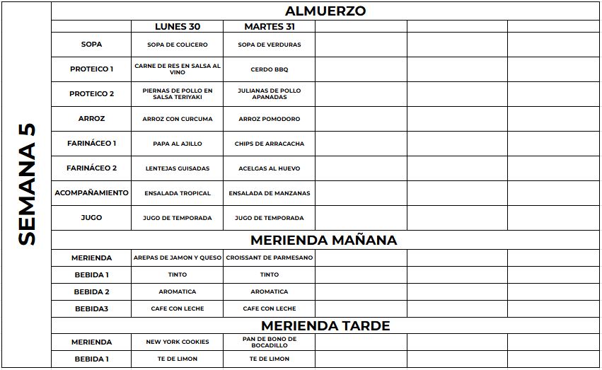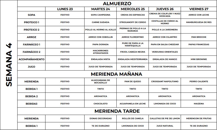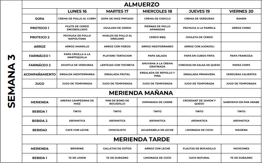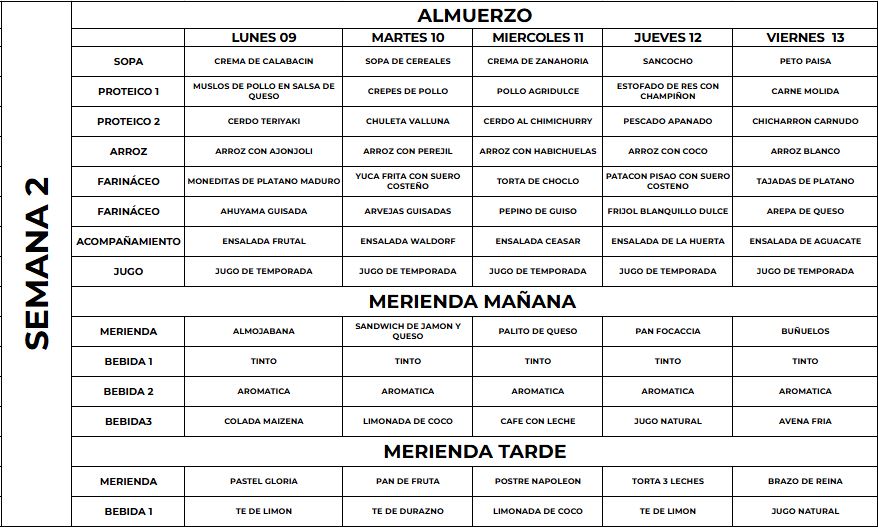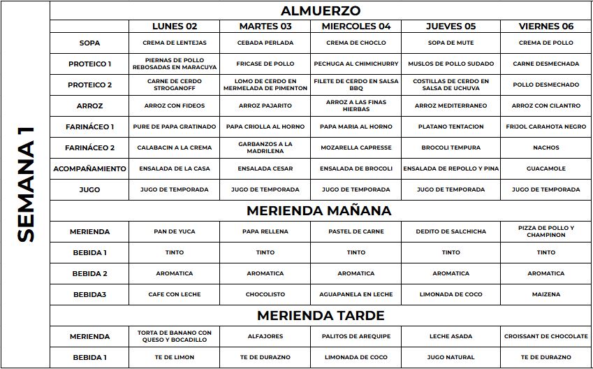 El menú puede presentar variaciones de acuerdo a las frutas y verduras de la temporada.